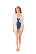 Este vestido de baño enterizo cuenta con varilla y detalles de cortes en la cintura que realzan la figura. Está confeccionado en una elegante tela texturizada. La espalda incluye un broche y tirantes ajustables para mayor comodidad. Además, ofrece control abdominal gracias a su PowerMesh integrado.