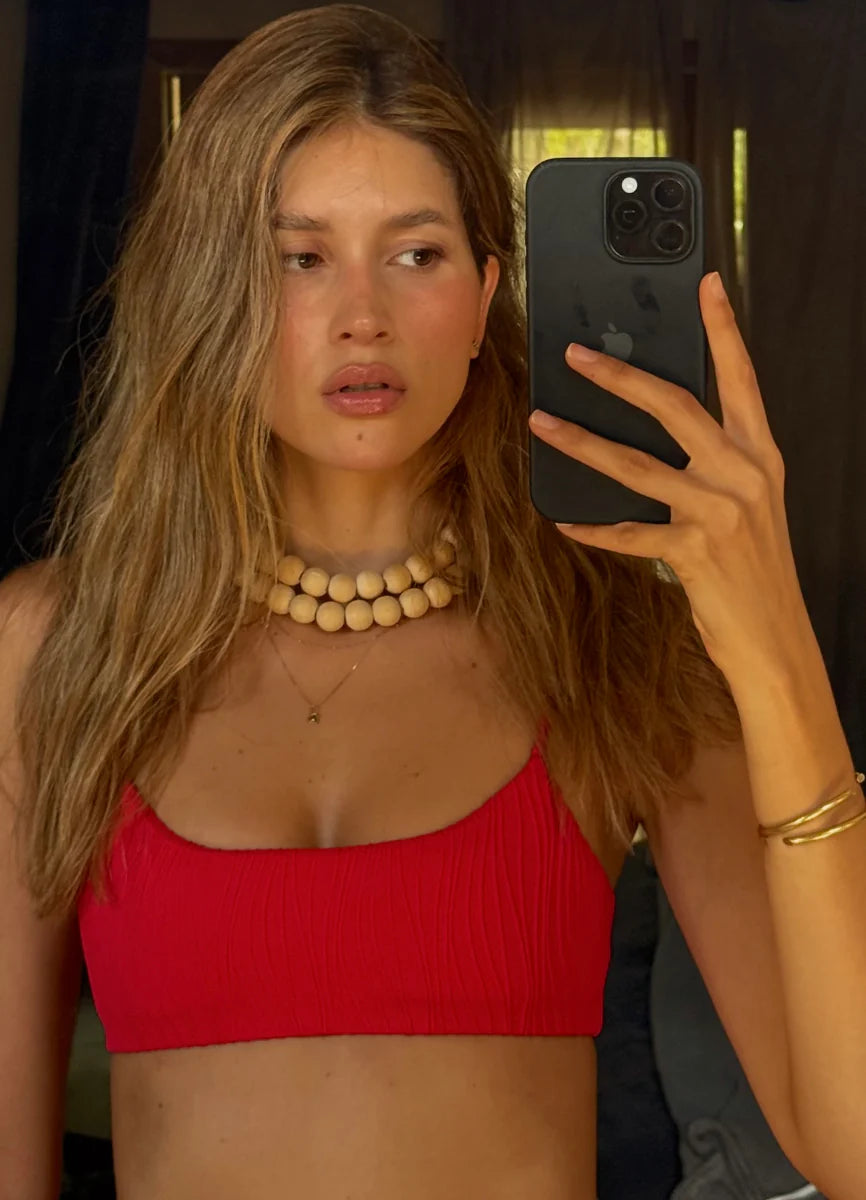Redefine tu estilo de playa con el solid crimson heat aldara top, un top de bikini tipo bandeau en un audaz color carmesí. Su tejido con textura acanalada y tiras finas ajustables ofrecen un calce seguro y cómodo, creando una silueta limpia bajo el sol. Es la pieza ideal para elevar tus looks de verano, y un must en tu colección Summer Gems.